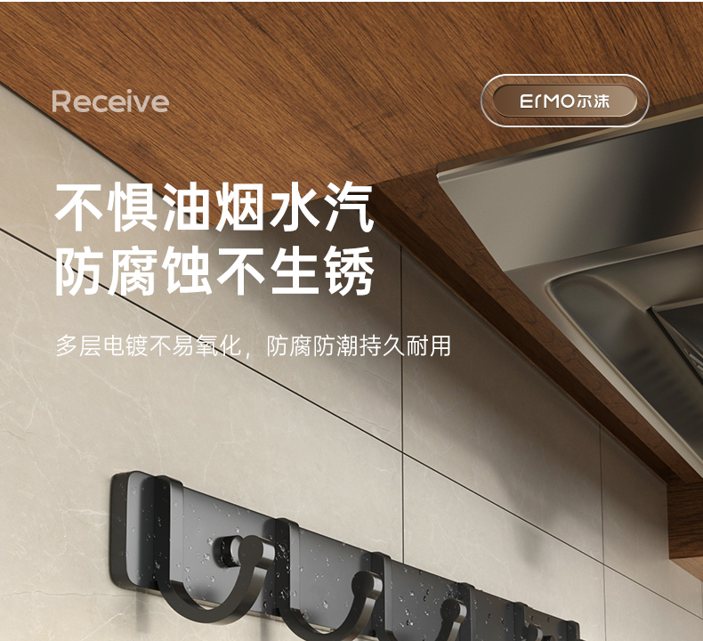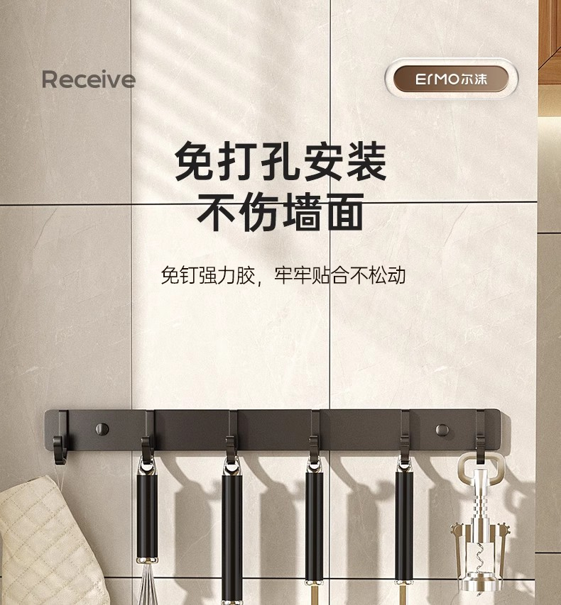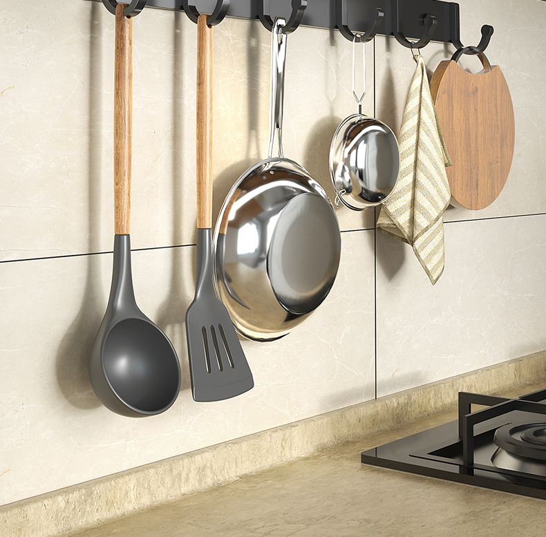 免打孔厨房挂钩架壁挂式抹布沥水架多功能锅铲勺子用品大全收纳架的描述
