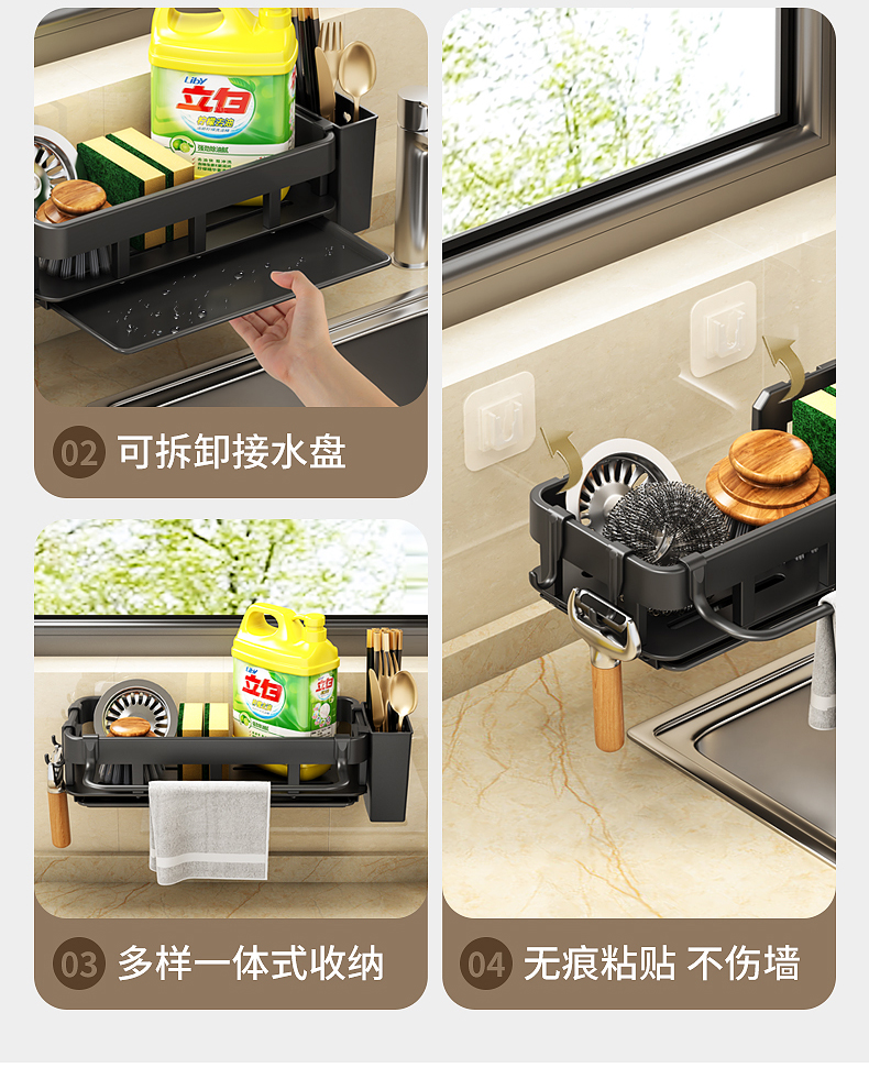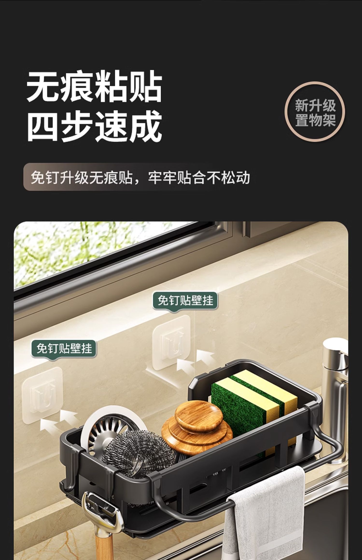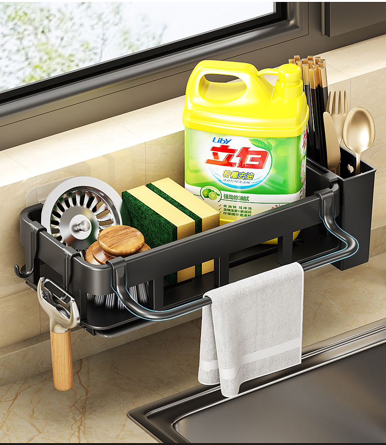 厨房置物架免打孔抹布海绵沥水收纳多功能壁挂调料架家用水槽神器的描述