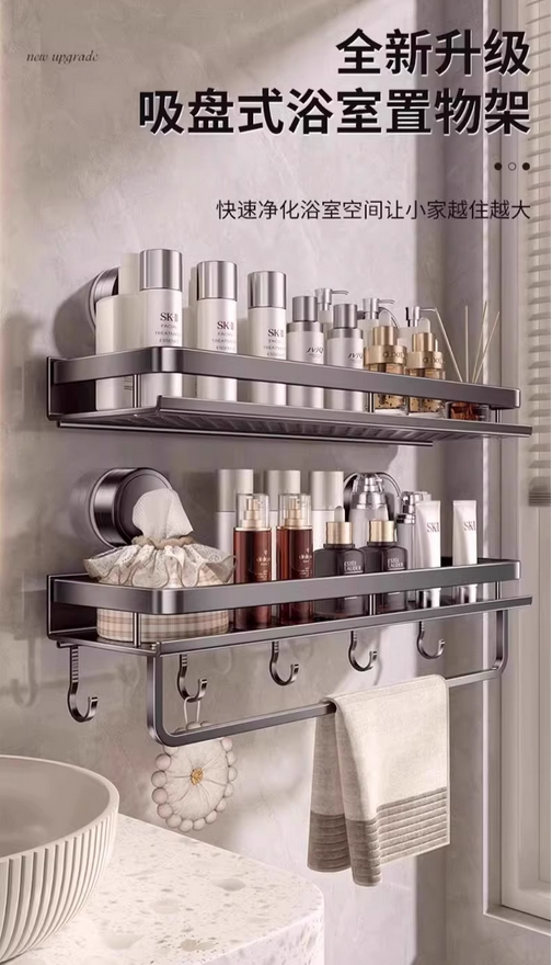百悍吸盘置物架卫生间浴室免打孔神器厕所洗漱台洗手间挂墙上收纳