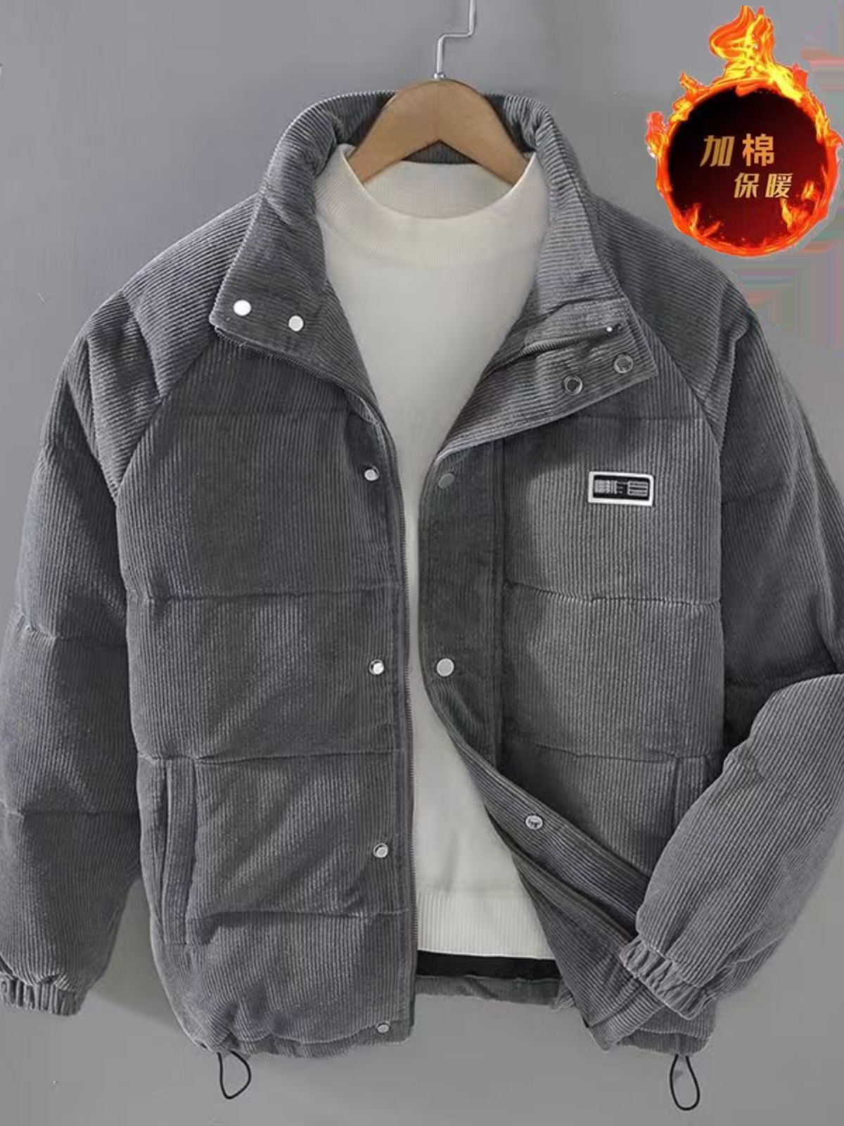 冬季男士棉衣加厚保暖灯芯绒棉服外套日系宽松潮流纯色秋冬装棉袄的描述