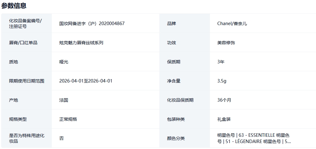 【新品上市】CHANEL 香奈儿魅力丝绒唇膏 哑光滋润口红 63/51的描述