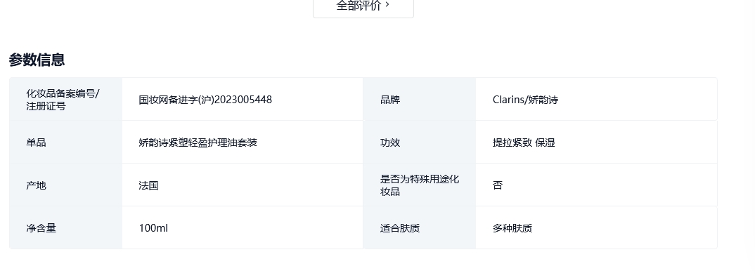娇韵诗紧塑轻盈护理油身体按摩精华油补水保湿滋润的描述