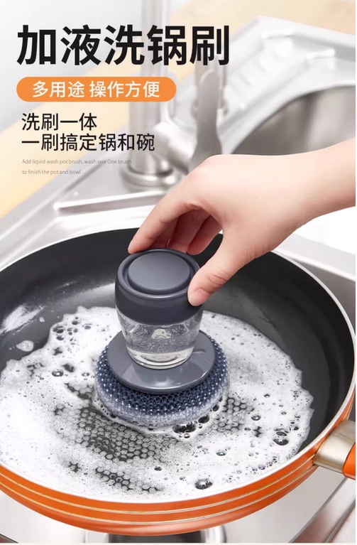 厨房自动加液洗碗刷家用洗锅刷海绵刷钢丝球长柄清洁刷子刷锅神器的描述
