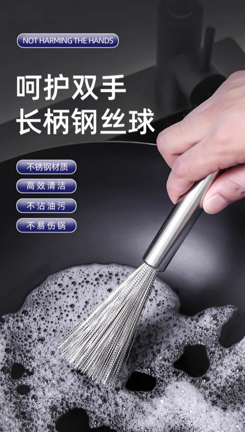 厨房自动加液洗碗刷家用洗锅刷海绵刷钢丝球长柄清洁刷子刷锅神器