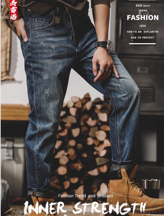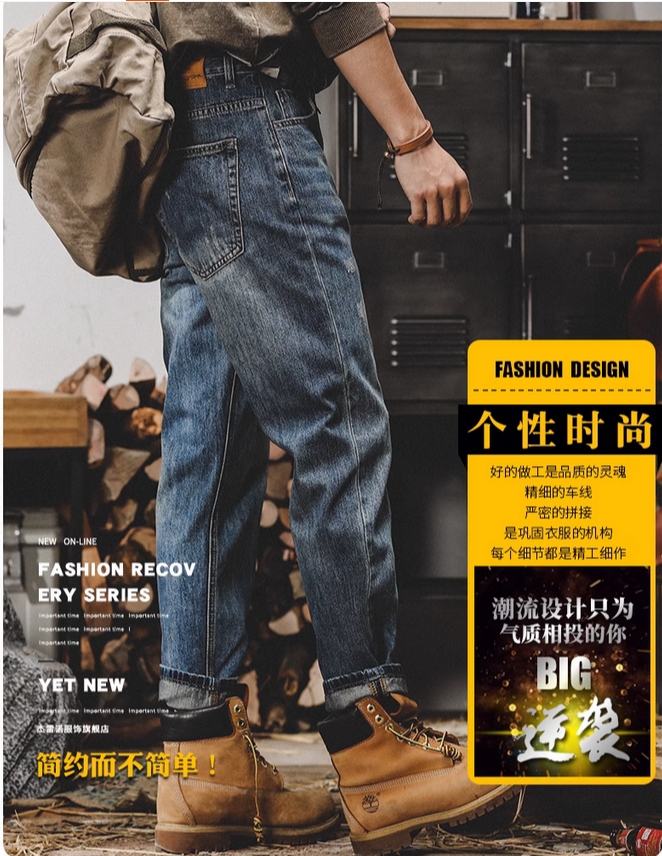 美式复古春季牛仔裤男2025新款宽松直筒潮牌裤子男春秋水洗休闲裤