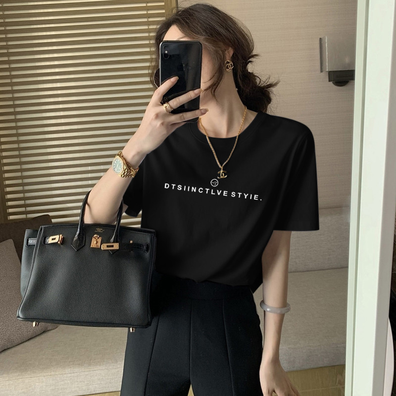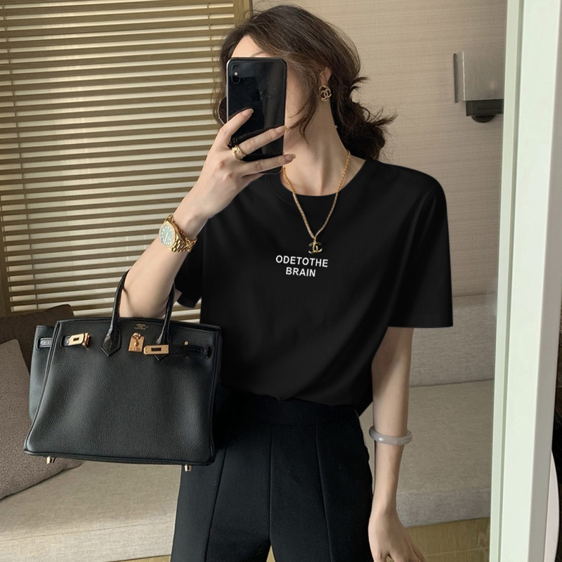 2023新款正肩纯棉短袖T恤女ins时尚百搭洋气减龄显瘦上衣夏季薄款的描述