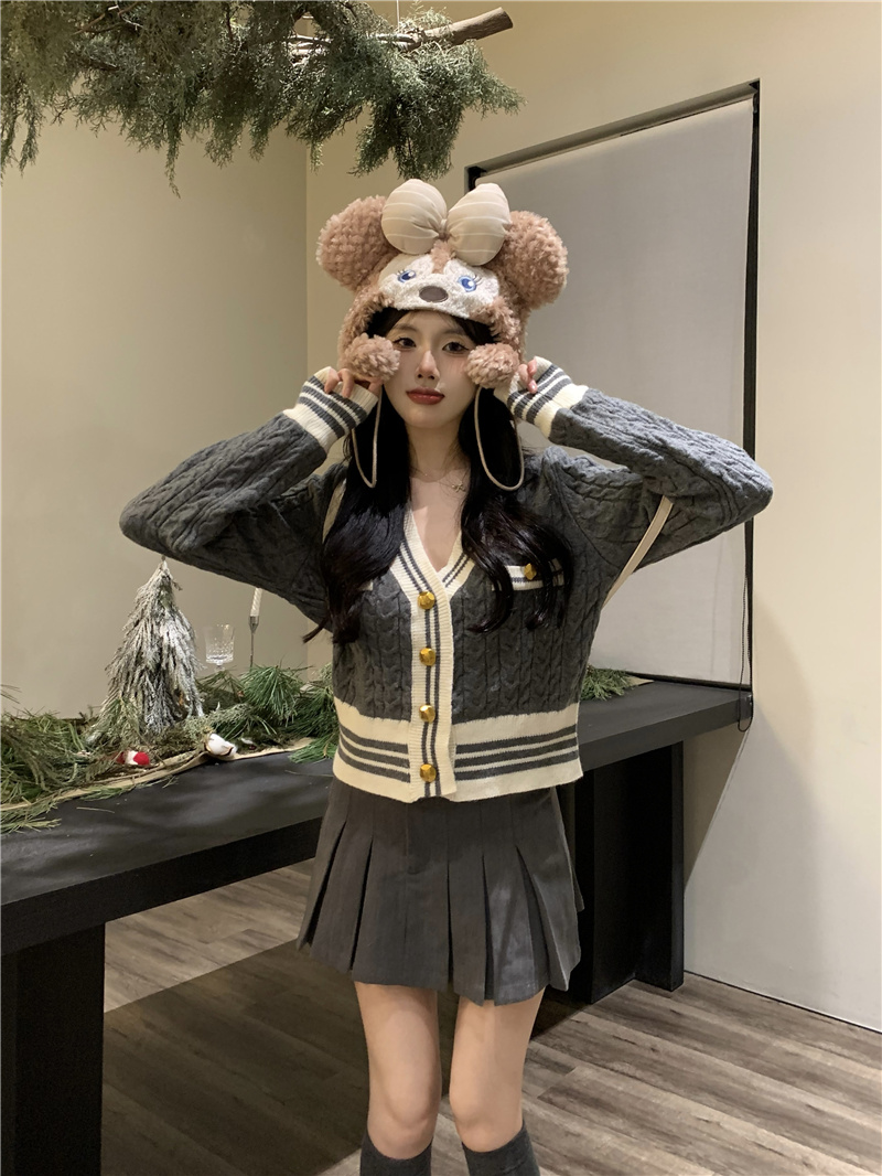 秋冬甜美减龄可爱立体宽松娃娃领设计感慵懒风针织套头毛衣女长袖