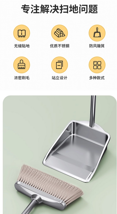 扫把2023新款家用簸箕套装组合扫帚头发扫地神器不锈钢垃圾铲笤帚