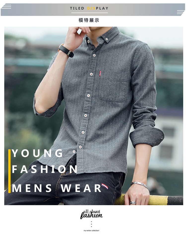 秋季条纹磨毛宽松棉衬衣男士上衣服长袖衬衫大码休闲男装外套潮流的描述